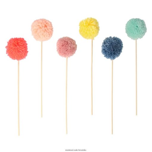 pomponi su još uvijek vrlo trendovski ukras, a posebno lijepo izgledaju na posebnim kolačićima ili svečanoj torti. ovaj set sadrži 6 šarenih pompona na drvenim ražnjićima. savršene su za korištenje za bilo koju zabavu ili tuširanje djeteta.