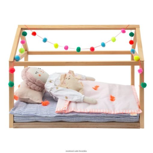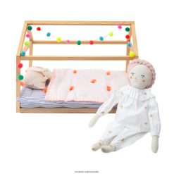 neka san omiljene lutke započne sa stilom uz naš senzacionalni drveni okvir kreveta. dolazi s lijepim vijencem od pompona, za dodavanje šarenog trendovskog prizvuka, i udobnim prugastim madracem.