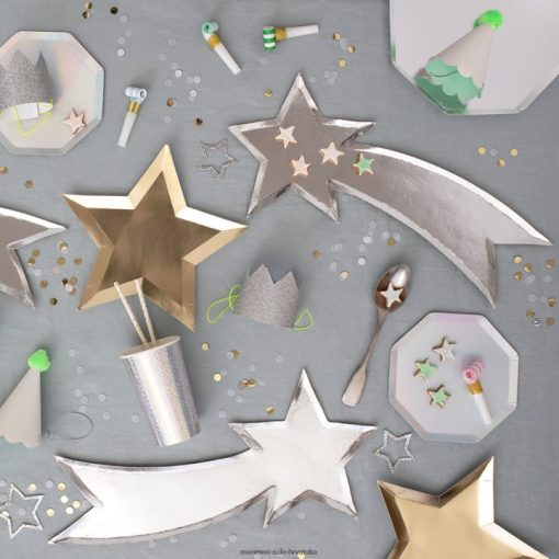 ako tražite moderan način za posluživanje poslastica na svojim svečanim proslavama, onda su ovi pladnjevi sa zvijezdom padalicom za vas! prekrasno su dizajnirani i izrađeni sa sjajnom srebrnom završnom obradom od folije – savršeni kao središnji dio stola ili za kanapee.