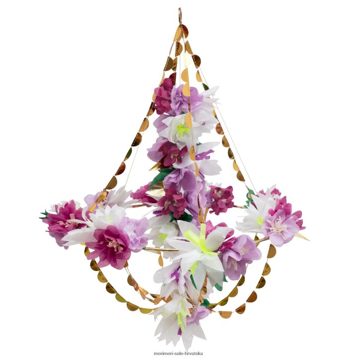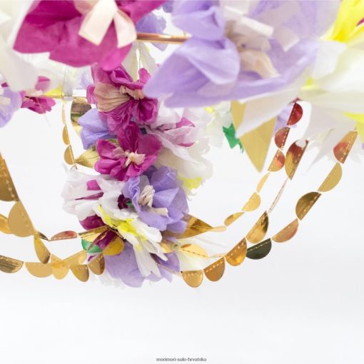 prekrasna kombinacija pastelnog i jarkog cvijeća, s detaljima od zlatne folije, na ovom lusteru inspiriranom pajaki prekrasno će transformirati sobu. savršen je za proljetnu zabavu ili kad god želite odmah dodati boju i stil.