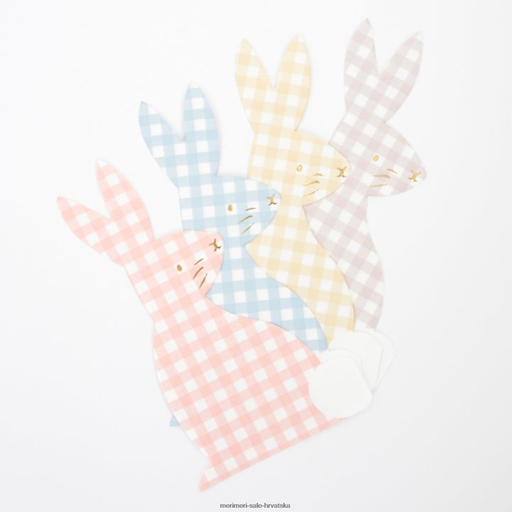 dodajte nevjerojatan izgled svom uskršnjem ili proljetnom stolu za zabavu s ovim divnim salvetama sa zečićima. izrađene su od gingham print dizajna, u 4 boje.