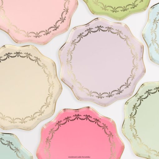 Drago nam je što surađujemo s laduree, restoranom, čajanom i stručnjakom za makarone, kako bismo stvorili ove prekrasne tanjure. izvrsne boje, dizajn zlatne folije i nazubljeni rubovi, tako su elegantni.