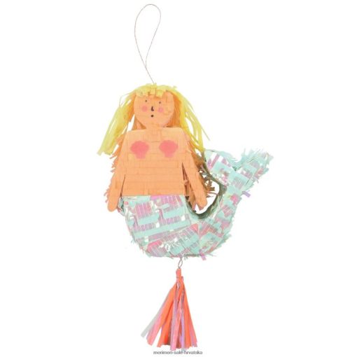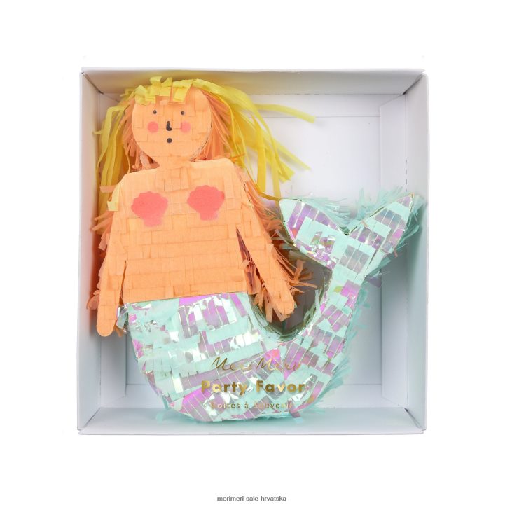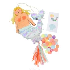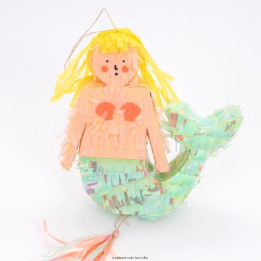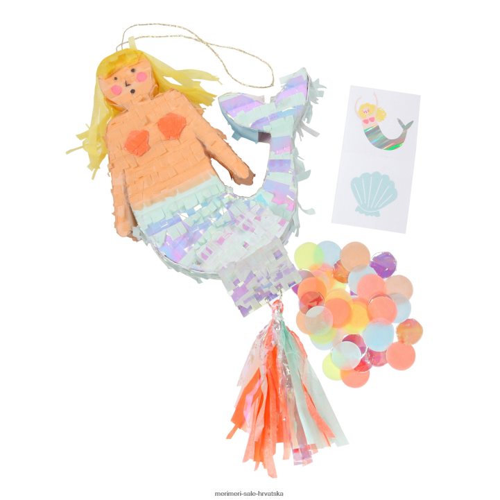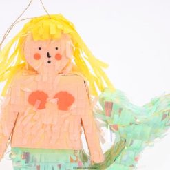 Izvađena iz čarobnog podmorskog kraljevstva, ova mini pinjata u obliku sirene savršena je za posebnu proslavu. sirena je ukrašena preljevima i rubovima od svilenog papira u boji i puna je šarenih konfeta od papirnog papira i lista privremenih tetovaža za onoga tko osvoji nagradu! ima i prostora da je napuniš dodatnim poslasticama.