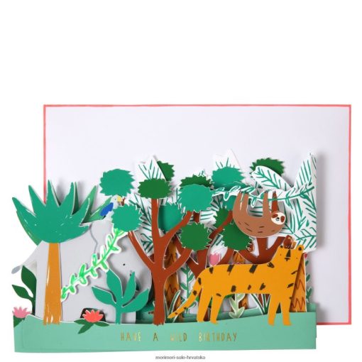 ova svijetla i lijepa čestitka sigurno će razveseliti nečiji poseban dan. otvara se i oblikuje scenu džungle punu šarenih stanovnika. dolazi s koordinirajućom omotnicom.