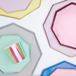 ovi veliki tanjuri tako su lijepe nijanse lila da su gotovo prelijepi za korištenje! izrađen od visokokvalitetnog kartona sa sjajnim obrubom od zlatne folije i vrhunskim sjajem.