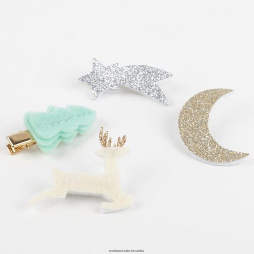 ako tražite fantastične božićne dodatke za kosu, onda je ovaj set savršen! sadrži sob, 3d božićno drvce, zvijezdu padalicu i polumjesec, a sve je izrađeno od filca s detaljima od svjetlucave tkanine. nosite ih na svečanim zabavama za zadivljujući izgled.