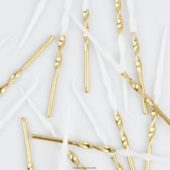 baš kad ste pomislili da naše rođendanske svijeće ne mogu biti sjajnije, dodali smo zaokret! kombinacija ovog uvrnutog dizajna s elegantnom zlatnom završnicom zajamčeno će učiniti da svaka torta izgleda senzacionalno. ove visoke svijeće savršene su za godišnjicu, vjenčanje, zaruke ili poseban rođendan.